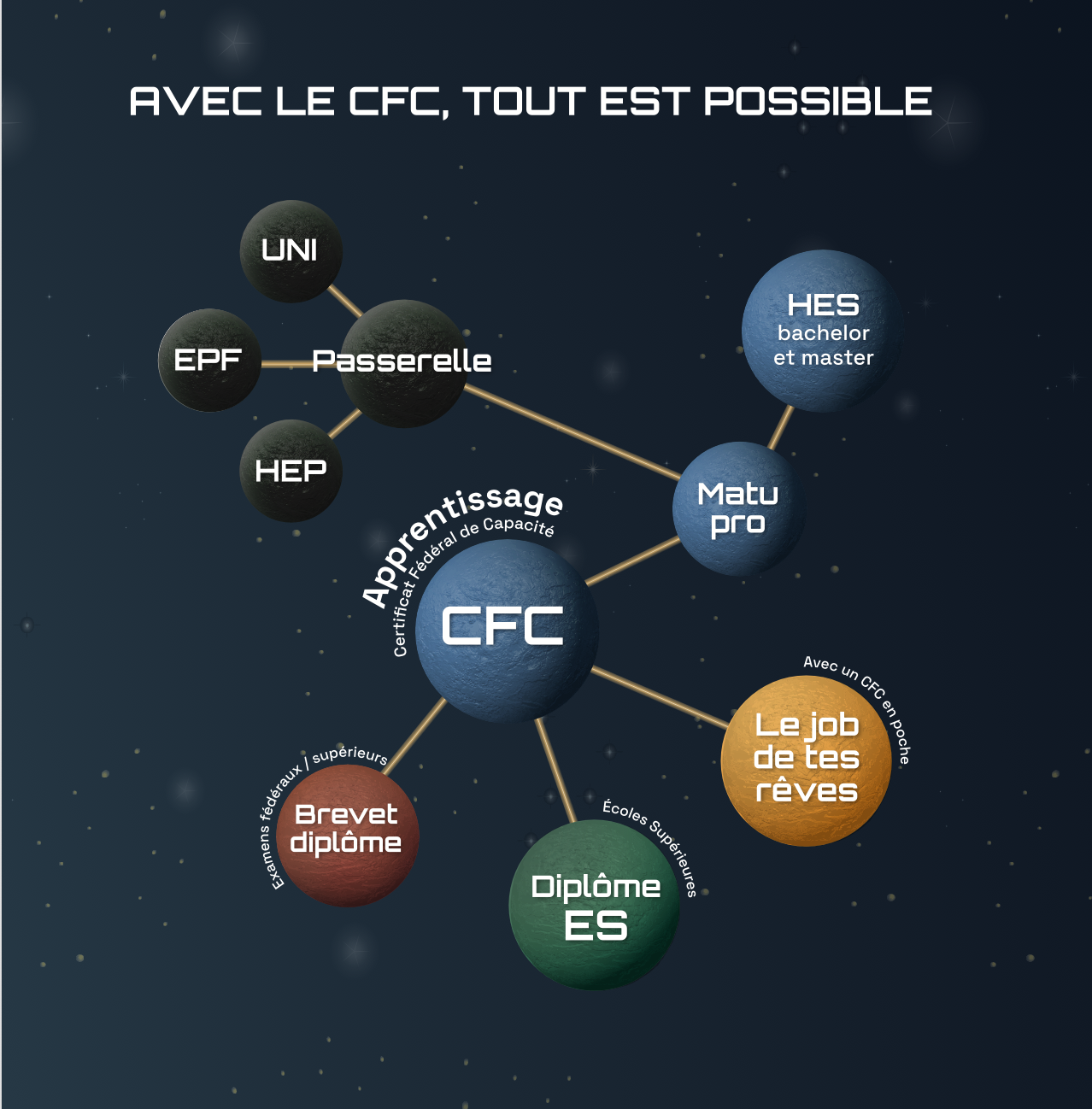 Le samedi et dimanche, les jeunes auront la possibilité de participer à un parcours de découverte des métiers dans le bâtiment. En partant du stand, ils pourront se rendre au premier étage (étape 1) dans le but de participer à des activités de découverte de la technique, comprendre quels métiers de l’industrie leur correspondent le mieux et imprimer les pieds de la fusée en 3D. Pour continuer le processus (étape 2), ils se rendront au CAAJ afin d’y découvrir des machines d’usinage, rencontrer les apprentis, faire des expériences et se laisser étonner par la mécanique. Finalement ils retourneront sur le stand avec leur fusée pour l’étape 3. A ce moment-là, ils auront également l’occasion de personnaliser leur vaisseau spatial sur une graveuse laser.